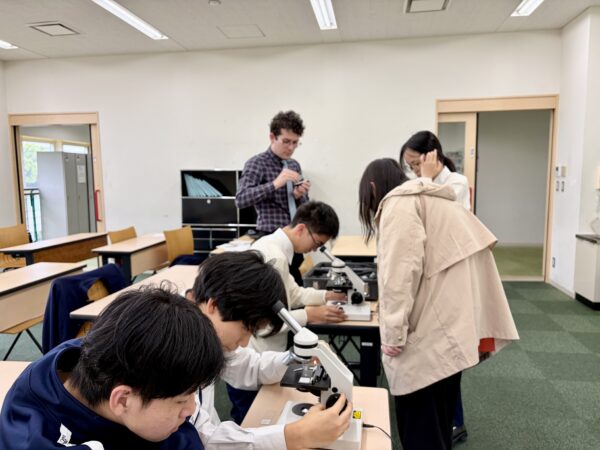 Students listened attentively to instructions on the proper handling of equipment and practiced using microscopes while learning basic observation techniques.